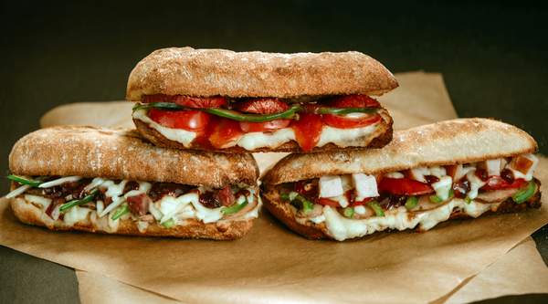 Sándwich de pan brioche, pimientos asados al humo, queso de cabra, pulled pork ahumado, huevos de corral, un toque de cebolla crunchy y nuestra mayo chutney