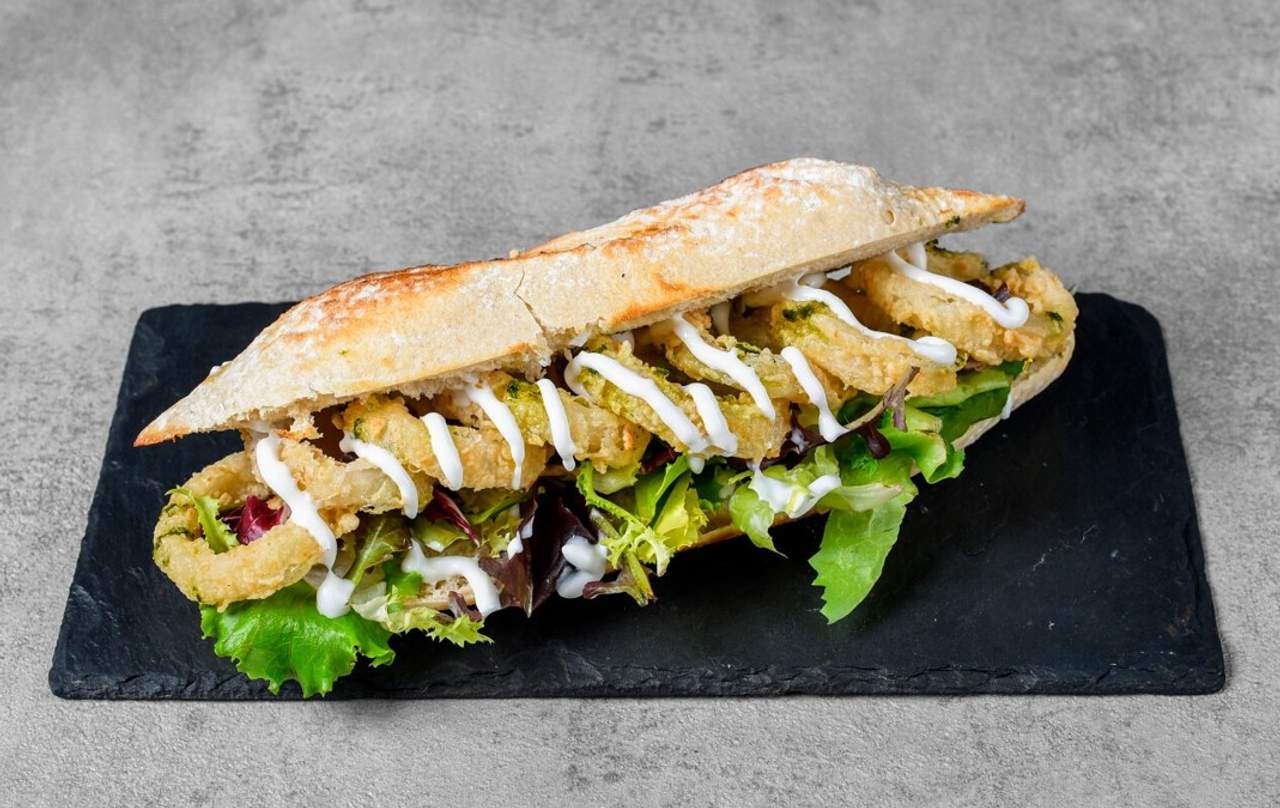 ternera empanada, lechuga, tomate, queso y mayonesa trufada