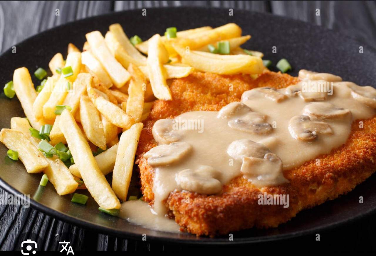 Milanese casera di pollo con salsa al ragù doc bolognese