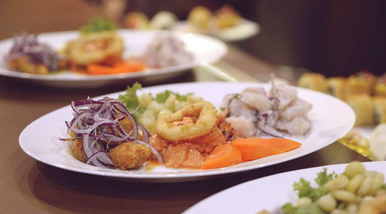 Deliciosa combinación de tacu-tacu relleno de langostino, aguacate y queso crema. Este exquisito maki se sumerge en una tempura, se baña en nuestra vibrante salsa acevichada y se realza con la frescura de su chalaquita