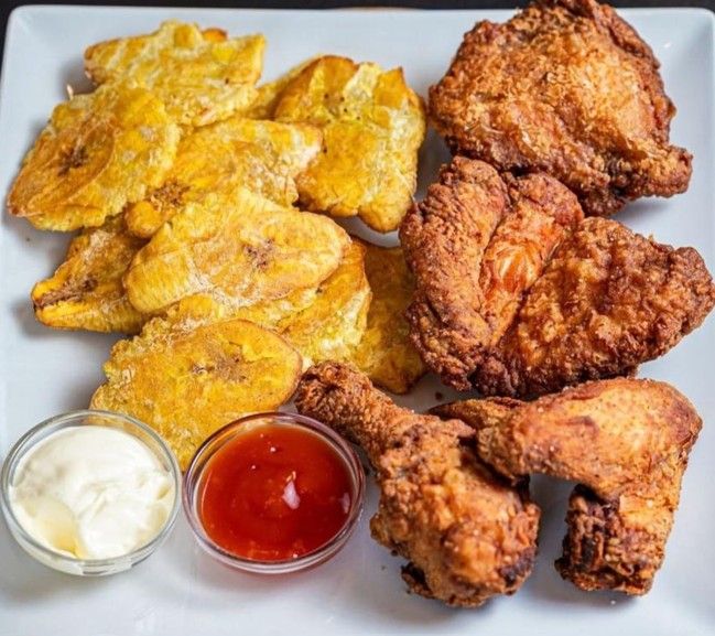 Acompañado con patatas o yuca bien crujiente muy delicioso