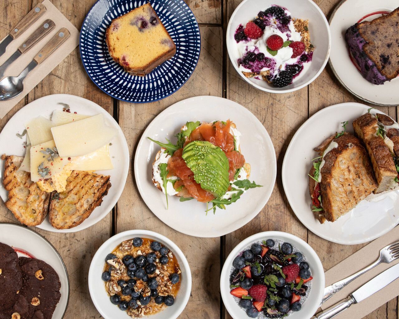 Blueberry chía bowl, con fermento de leche de coco, frutos rojos y hierbabuena