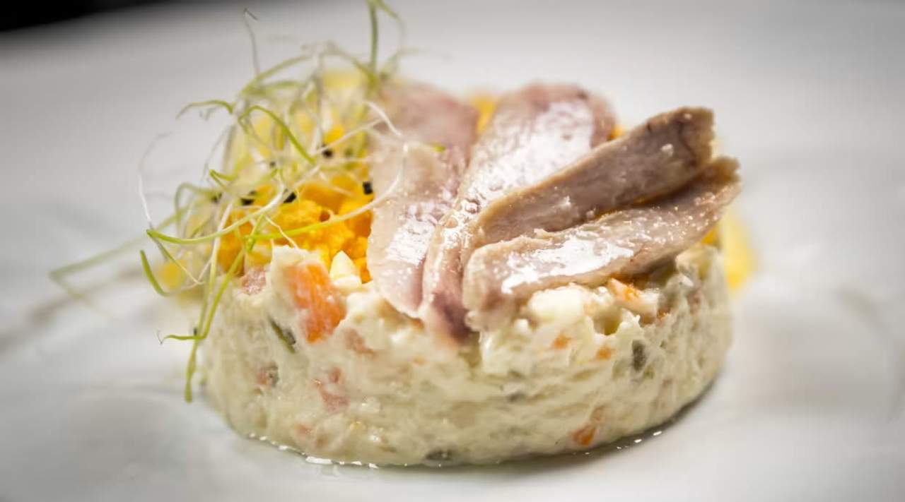 Una mezcla armoniosa de patatas, verduras, mayonesa y un toque de atún: ¡una obra maestra culinaria! Premiada como una de las mejores de España 2021