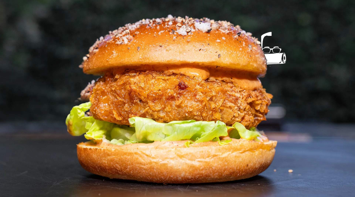Pan brioche y deliciosa pechuga crunchy, queso gratinado y crujiente bacon