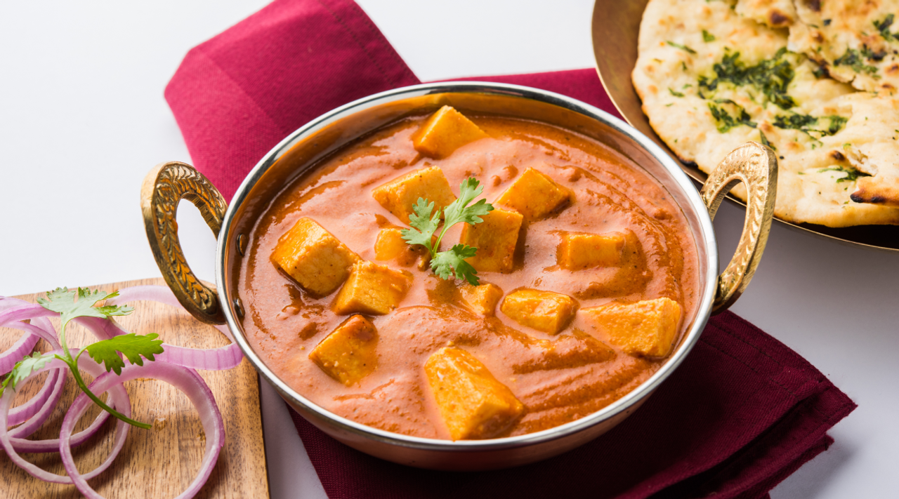 Cubos de requesón con marinado a base de yogurt con un toque de especias indias, cocinadas en tandoor