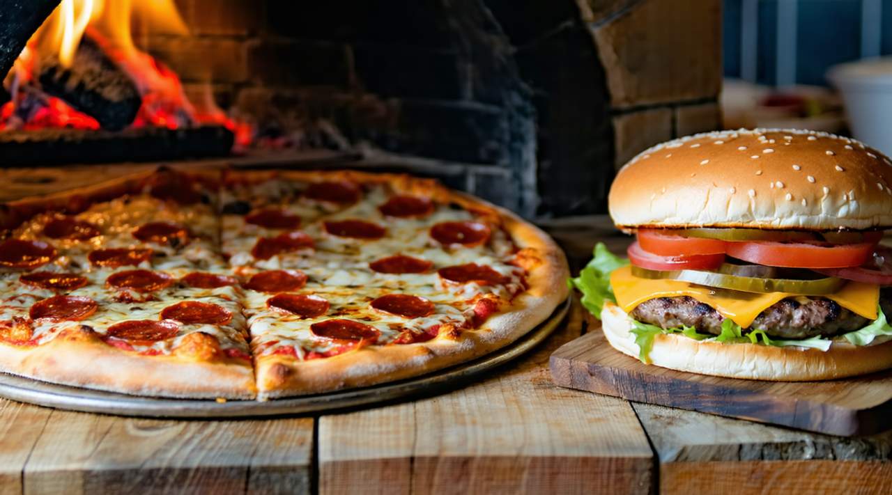 Tomate, mozzarella, jamón, pepperoni y olivas