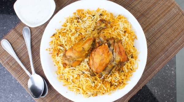 Arroz basmati con pollo, ternera, y gambas con salsa especial