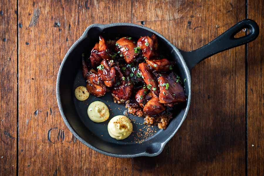 Tapa - Pollo yakitori con trigo bulgur salteado y salsa de aji