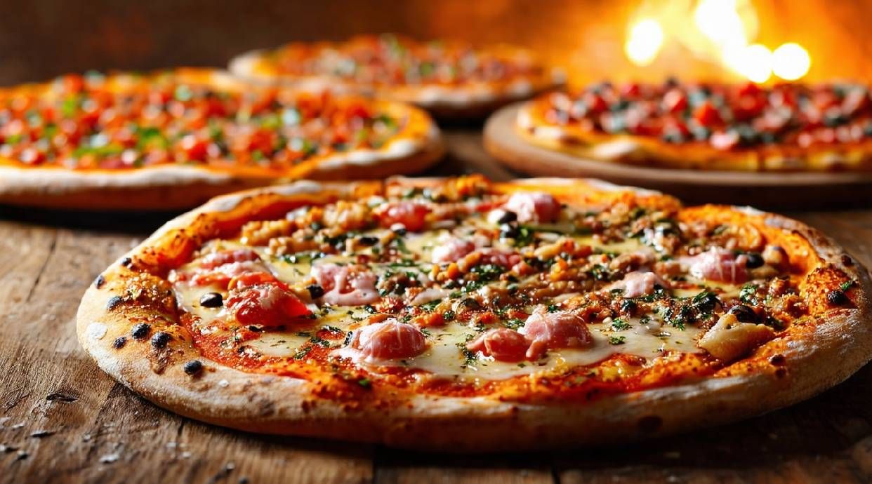 Mozzarella fiordilatte, salsa de tomate, alcachofas, olivas negras, champiñones, jamón dulce