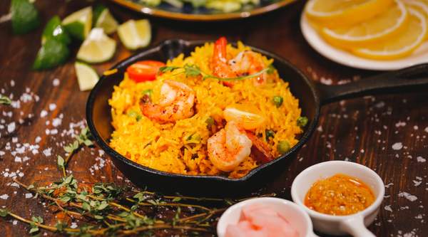 Arroz basmati, cebolla, tomate natural, limón y cúrcuma