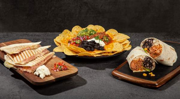 Acompañados con Queso, Frijoles Negros, Guacamole, Pico de Gallo, Crema agria, Jalapeños y tu Proteína Favorita.