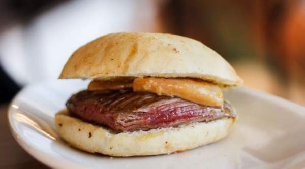 Con carne madurada, edam, gouda, cheddar, bacon crujiente y mostaza