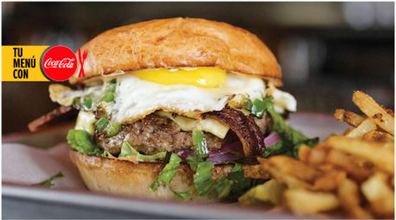 100% vacuno, pan artesanal, huevo frito, bacon crujiente, pepinillo, tomate y queso cheddar. (Gluten en el pan, huevo, lácteos)