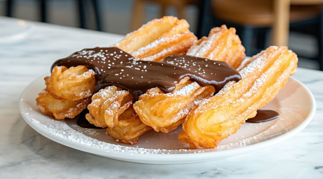 Churros bañados en chocolate con leche