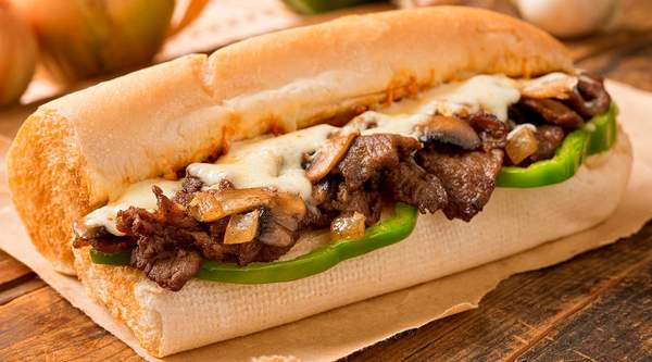 Pan de barra relleno de lomo con queso y pimientos