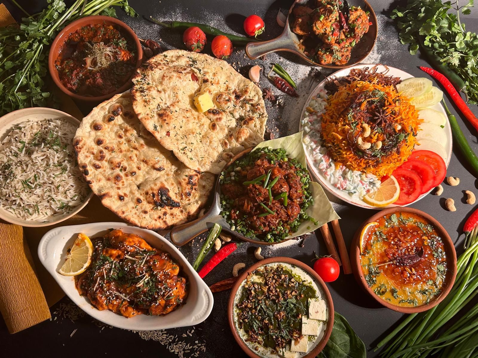 Spiced rice layered with marinated paneer and herbs.