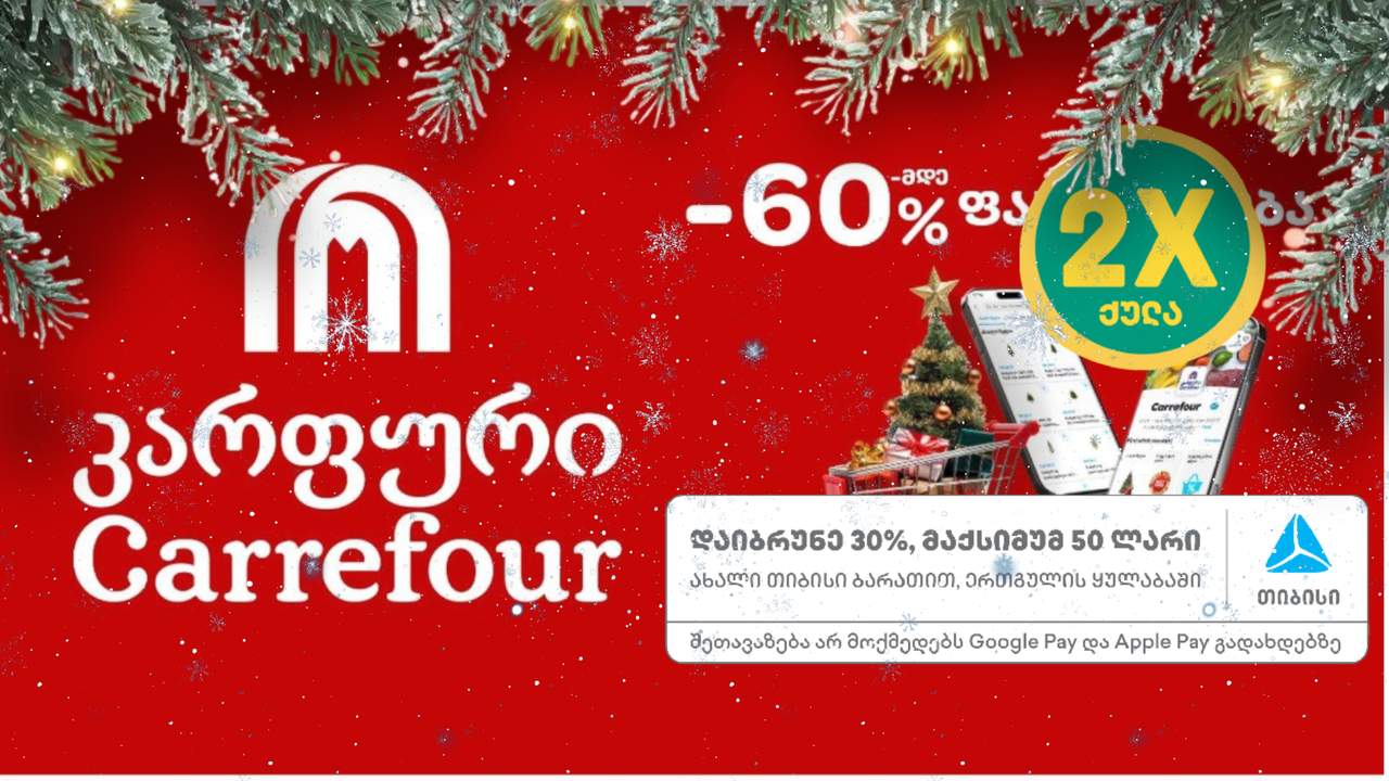 გადაიხადე მინიმუმ 100 ლარი თიბისის ახალი ბარათით, ახალი კონცეპტ ბარათით ან თიბისის ერთგული ბარათით მიიღე ქეშბქი თანხის 30%, მაქსიმუმ 50 ლარი