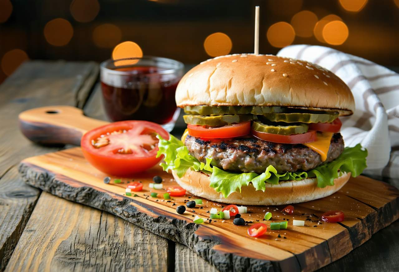 Lepinja, juneća pljeskavica, cheddar sir, prilozi po želji