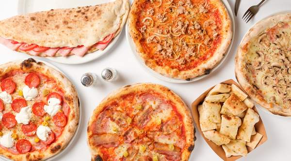Tijesto, sir, 2 umaka po izboru. Pizza je narezana na sitne kockice za umakanje u umak