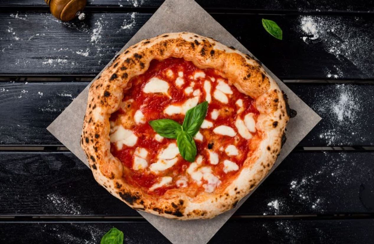 Pomodoro San Marzano Dop, pomodorini rossi e pomodorini gialli del Piennolo, filetti di acciughe del Cilento, olive nere caiazzane, aglio, origano nostrano, basilico, olio evo