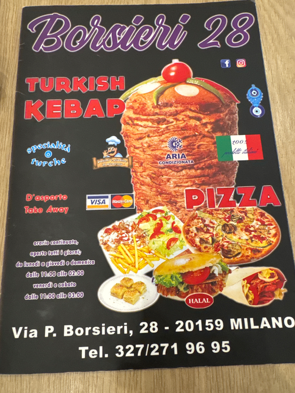 O que posso pedir do Turkish Kebab Borsieri em Milano?