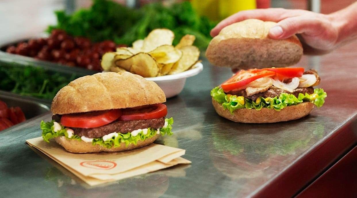 Hamburger di fassone, insalata, pomodoro, maionese e rubra