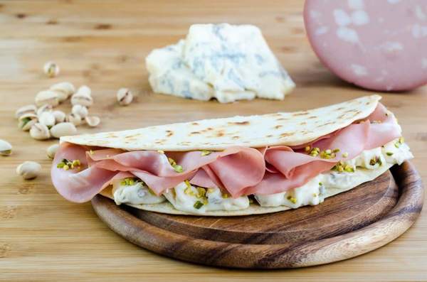 Piadina con mortadella Bologna IGP, stracciatella pugliese e granella di pistacchio