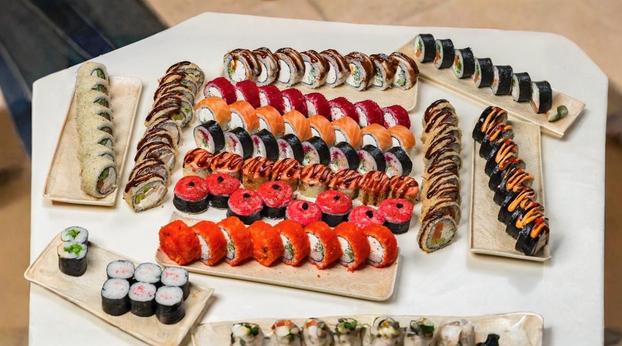 Филадельфия (16 шт), Калифорния, Белая кера, Нью-Йорк, Мини Фила, Ролл огурец, Ролл лосось, Ролл пирамида (68 шт)