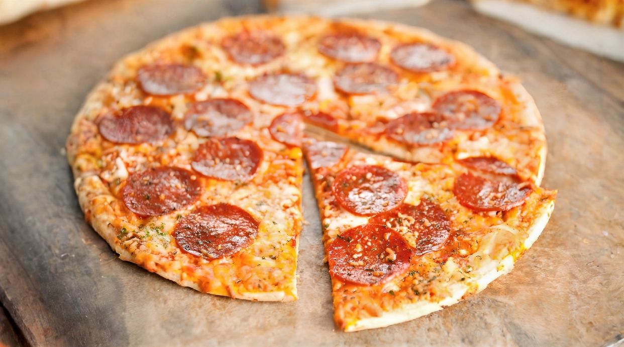 Соус фирменный, свежие помидоры, сыр моцарелла, колбаса, сосиски, салями, огурцы, маслины, лук