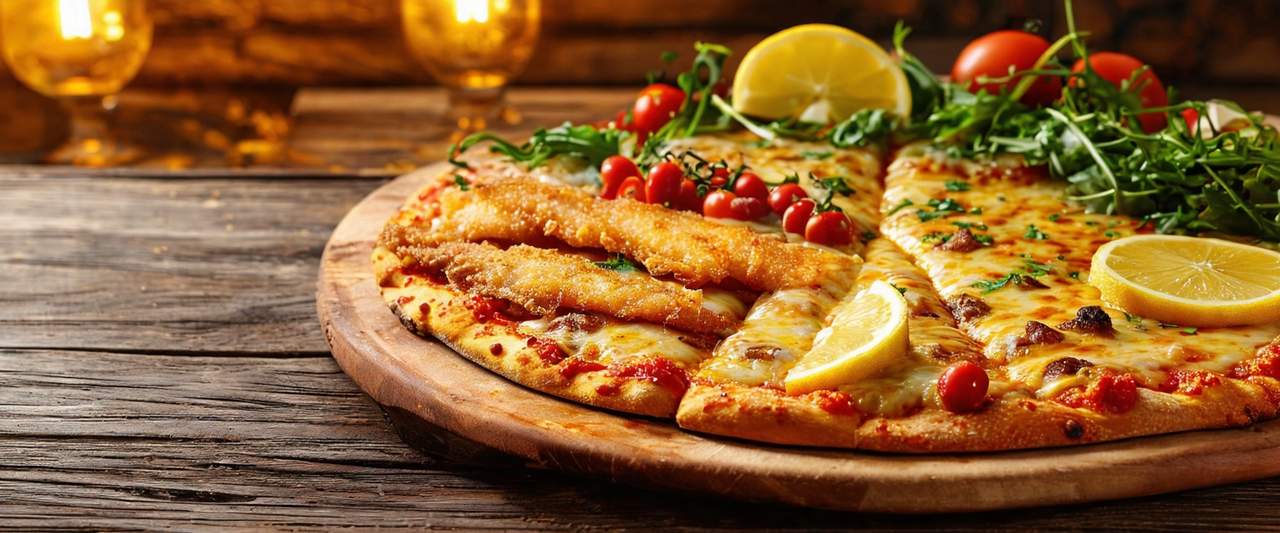 Sauce tomate, calamar, crevette, moules, roquette, champignon