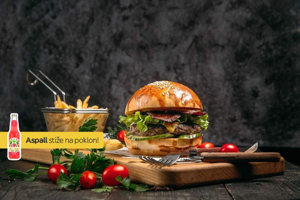 Cheeseburger, Rio tortilla, velika gurmanska, 10 ćevapa, velika porcija kobasica, punjeni batak, pljeskavica, hrskava piletina sa susamom, pileći file, velika porcija uštipaka, 4x lepinje, 4x salata po izboru