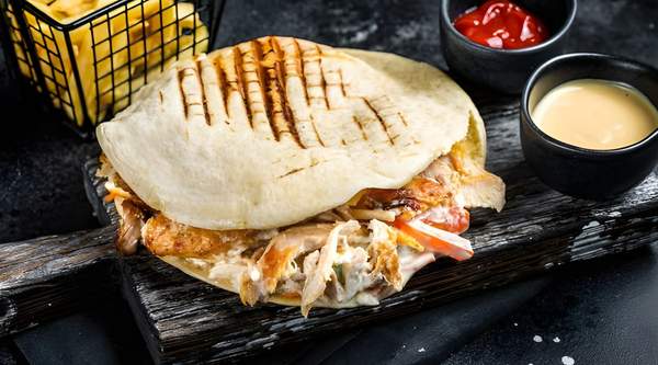 Mięso, frytki, surówka, sosy: ostry, łagodny, mieszany.