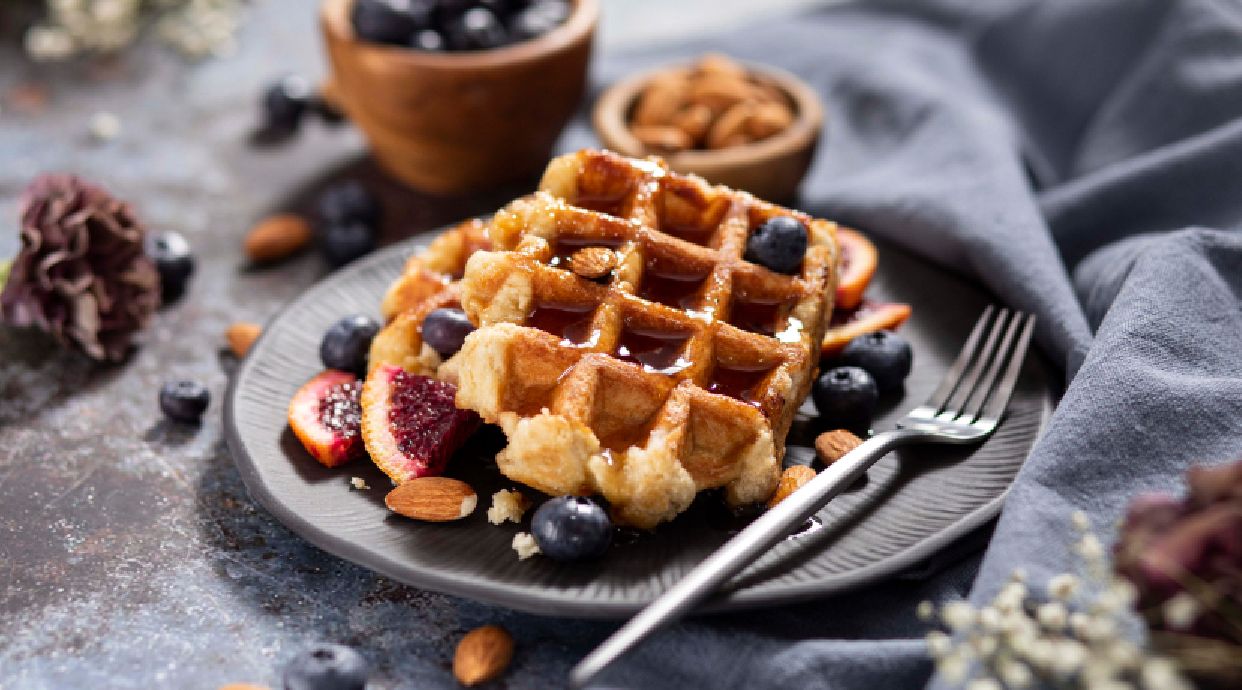 Bąbelkowy gofr z bitą śmietaną i owocami