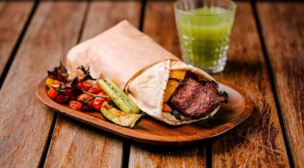 turecki chleb, podwójne mięso kebap, surówki, sos
