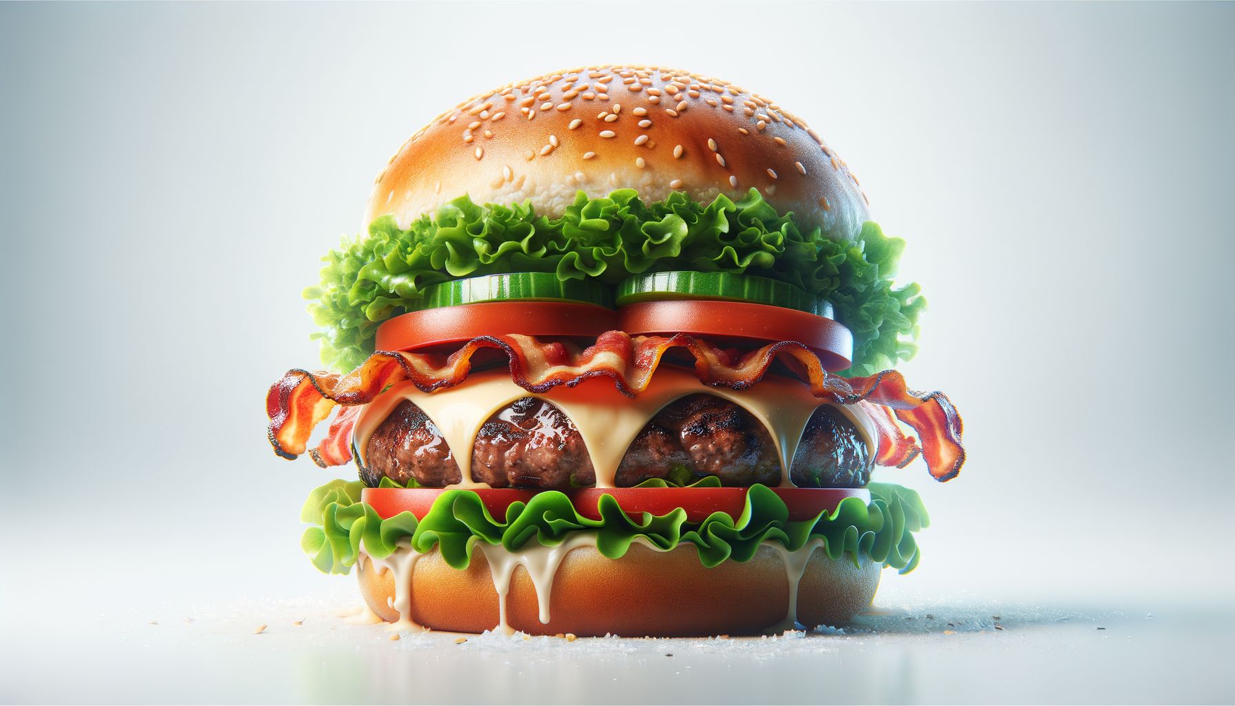 Bułka, 2x mięso wołowe smash, 2x ser cheddar, majonez, ketchup, ogórek kiszony, cebula czerwona w konfiturze