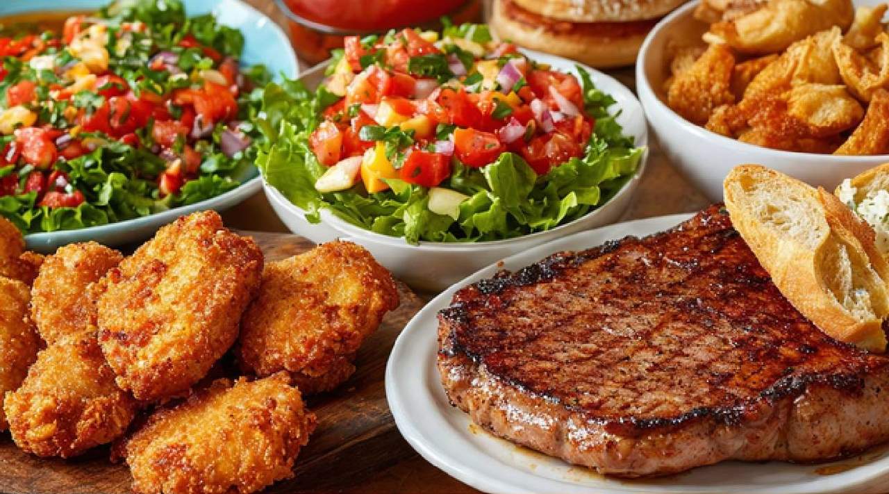 Arroz, batata frita, ovo frito e bife porco ou frango grelhado