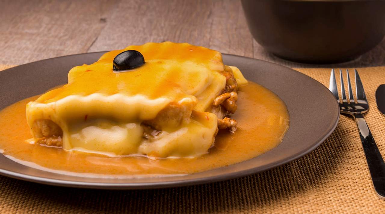 Pão de forma, queijo, salsicha, fiambre, linguiça, molho de francesinha e bife à escolha