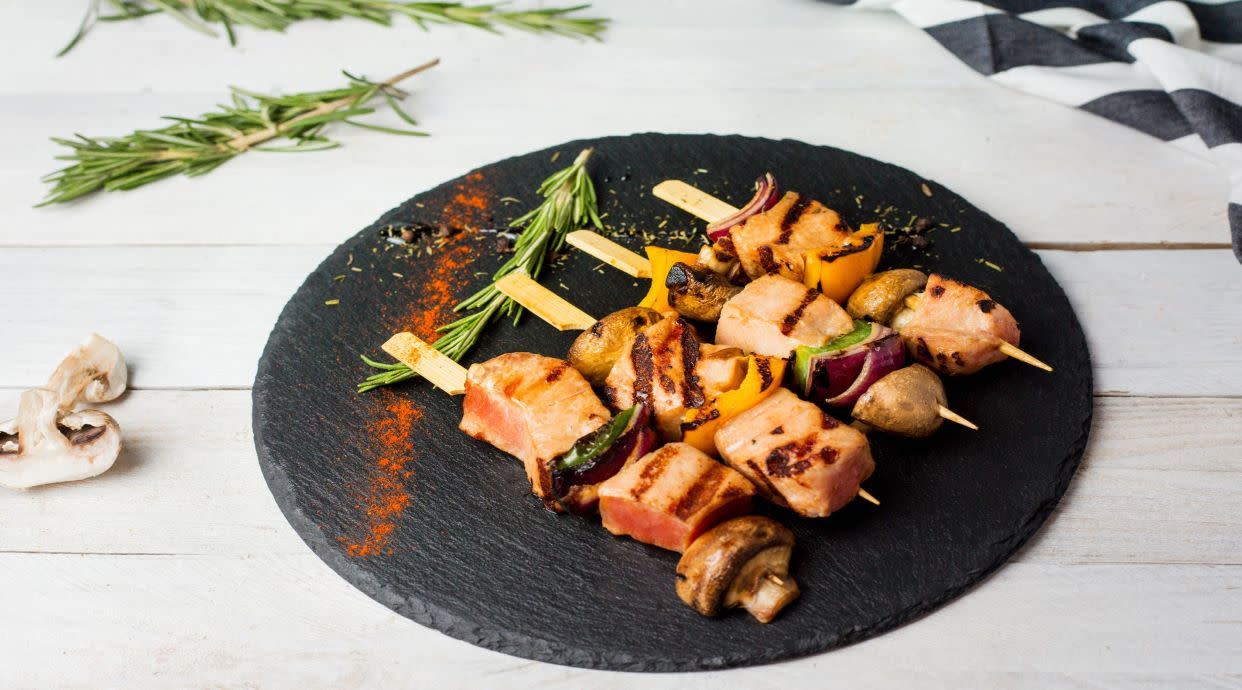 salmao grelhado com legumes e batata