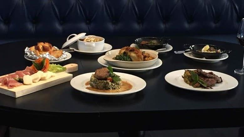 Bife do lombo, presunto porco preto, ovo e molho à portuguesa, acompanhado com batatas fritas