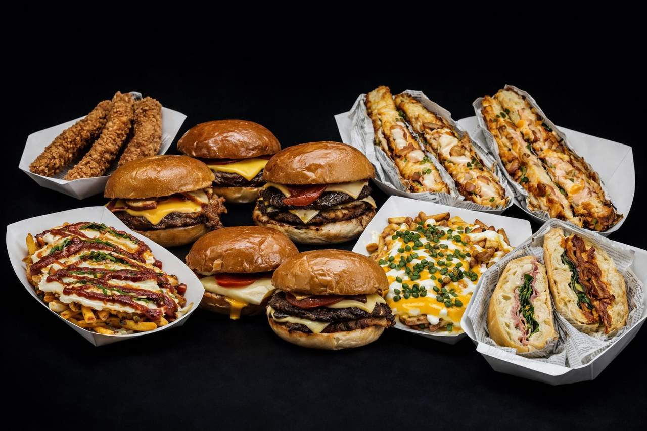 cartofi prăjiți, mix de brânzeturi, carne tocata vita, cheddar, caș afumat, sos burger, sos aioli, cepa verde