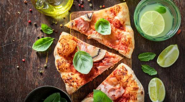 Faina alba, mozzarella, prosciutto cotto, ciuperci, sos de rosii - 460g