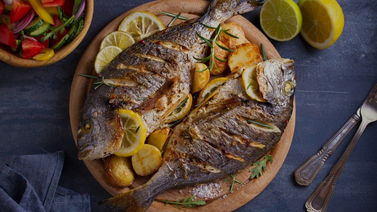 celi brancini pripremljeni na roštilju, sosovi gratis, posno