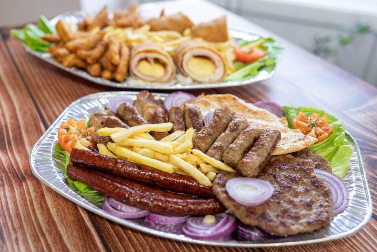 1 kg roštilj mesa, 550 g pohovanih pilećih štapića, 450 g pomfrita, sezonska salata, 6 domaćih lepinja, 3 sosa po izboru