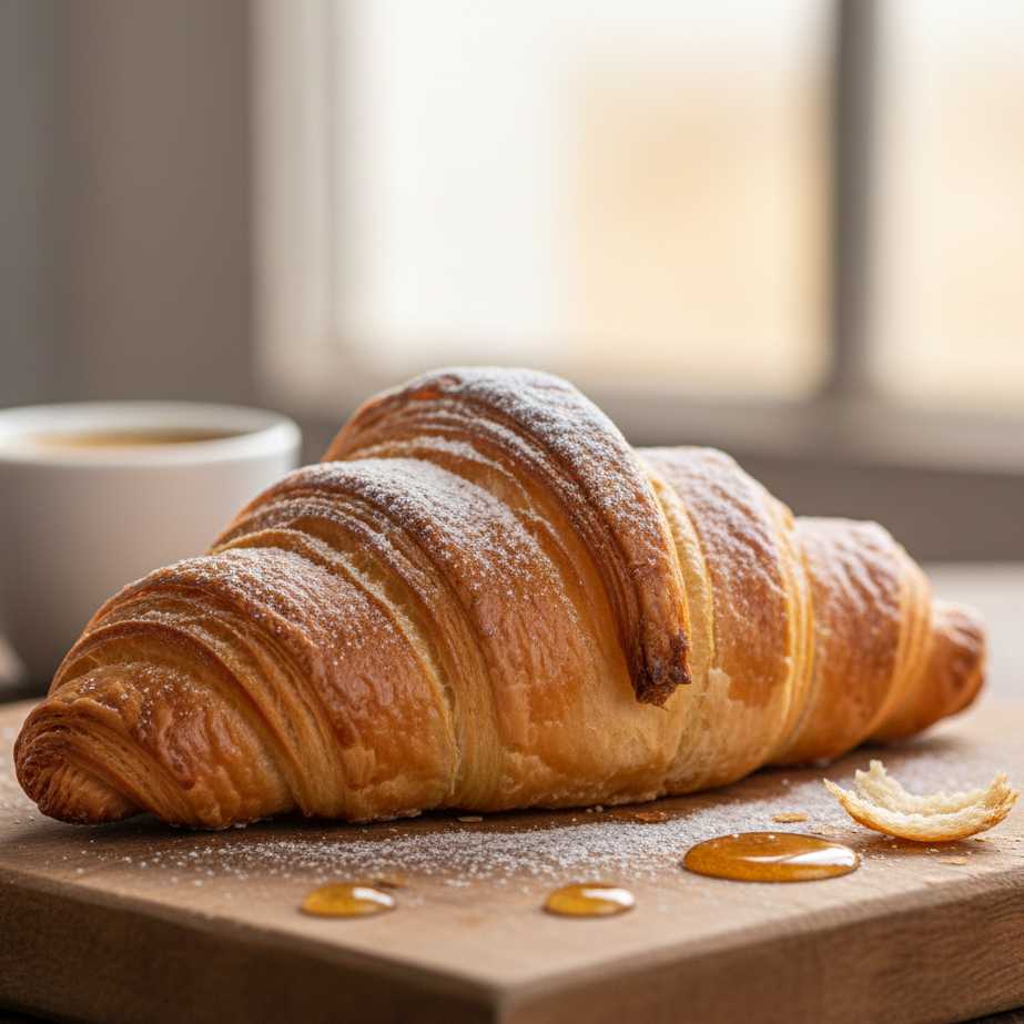 Золотистий круасан із шаруватого тіста, наповнений ароматною шинкою. Смак, що поєднує легкість французької випічки та насиченість м’ясної начинки.