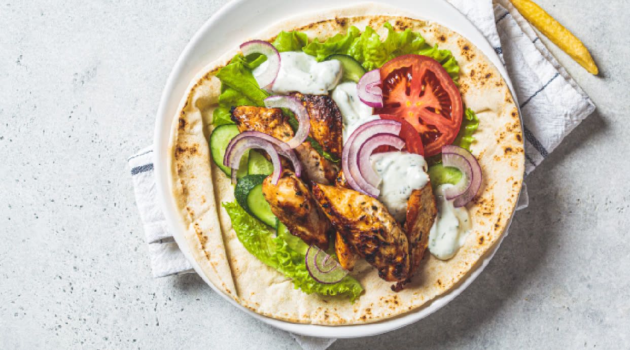 Пшенична тортилья, салат айсберг, котлета Кордон Блю, гірчично-медовий соус.
