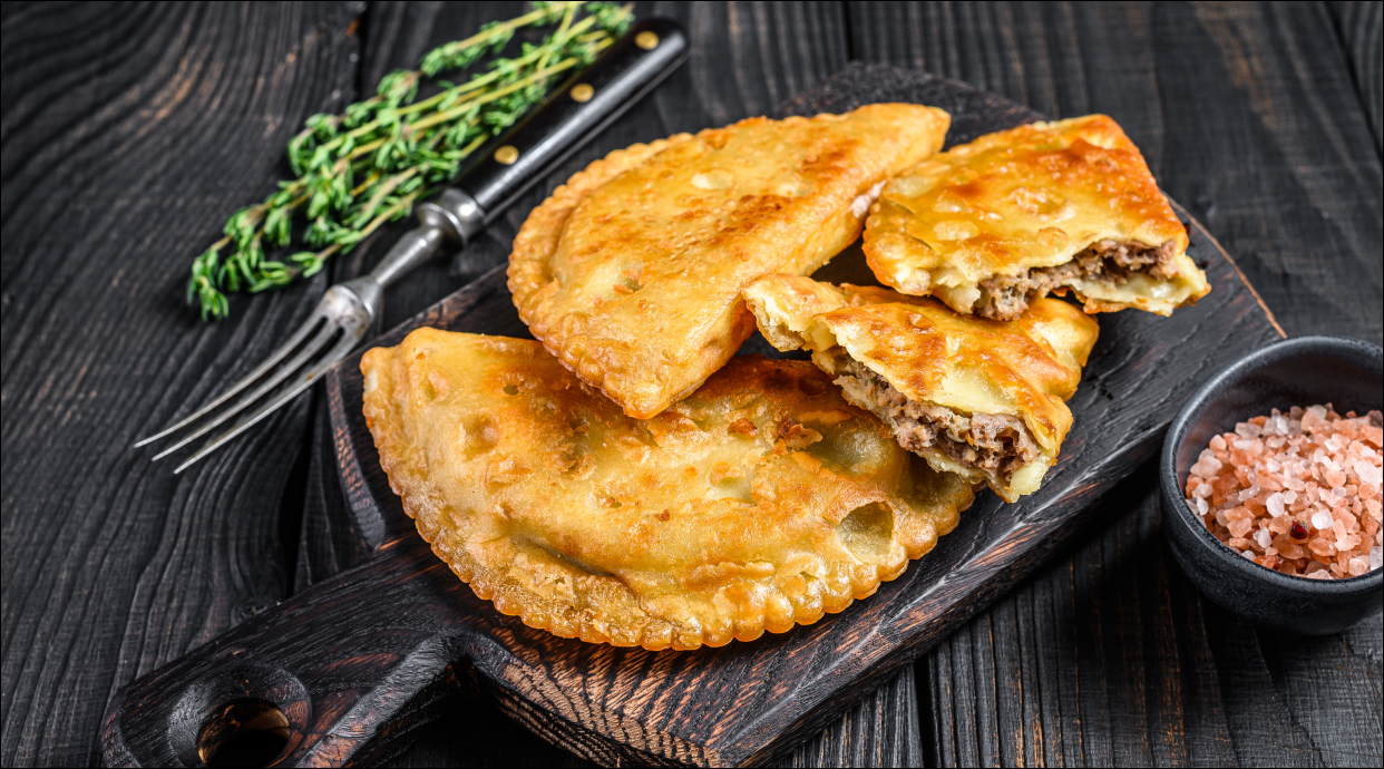 (мікс чебуреків з м'ясом телятини, з м'ясом соковитої курки, з м'ясом баранини)