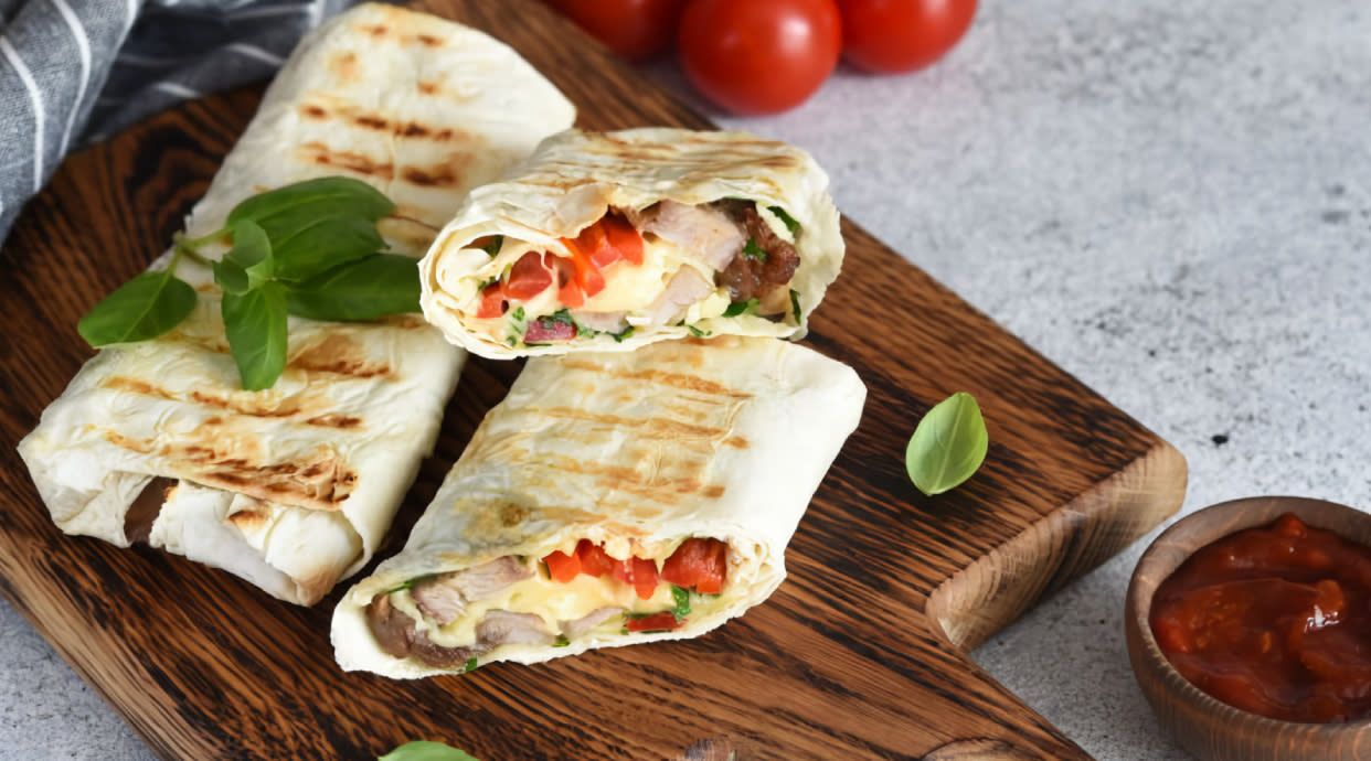 Лаваш армянський, молода капуста, куряче м’ясо, солений огірок, морква по корейськи , синя цибуля, фірмовий часниковий соус в поєднані з томатним соусом