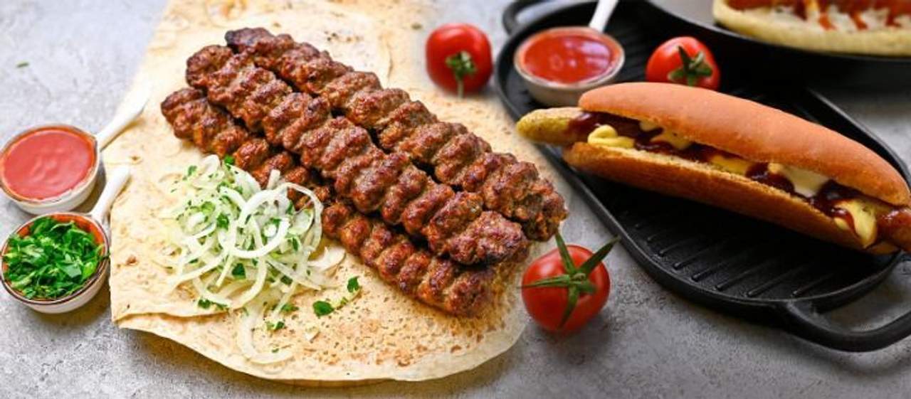 տավարի միս, լավաշ, սոխ, մաղադանոս