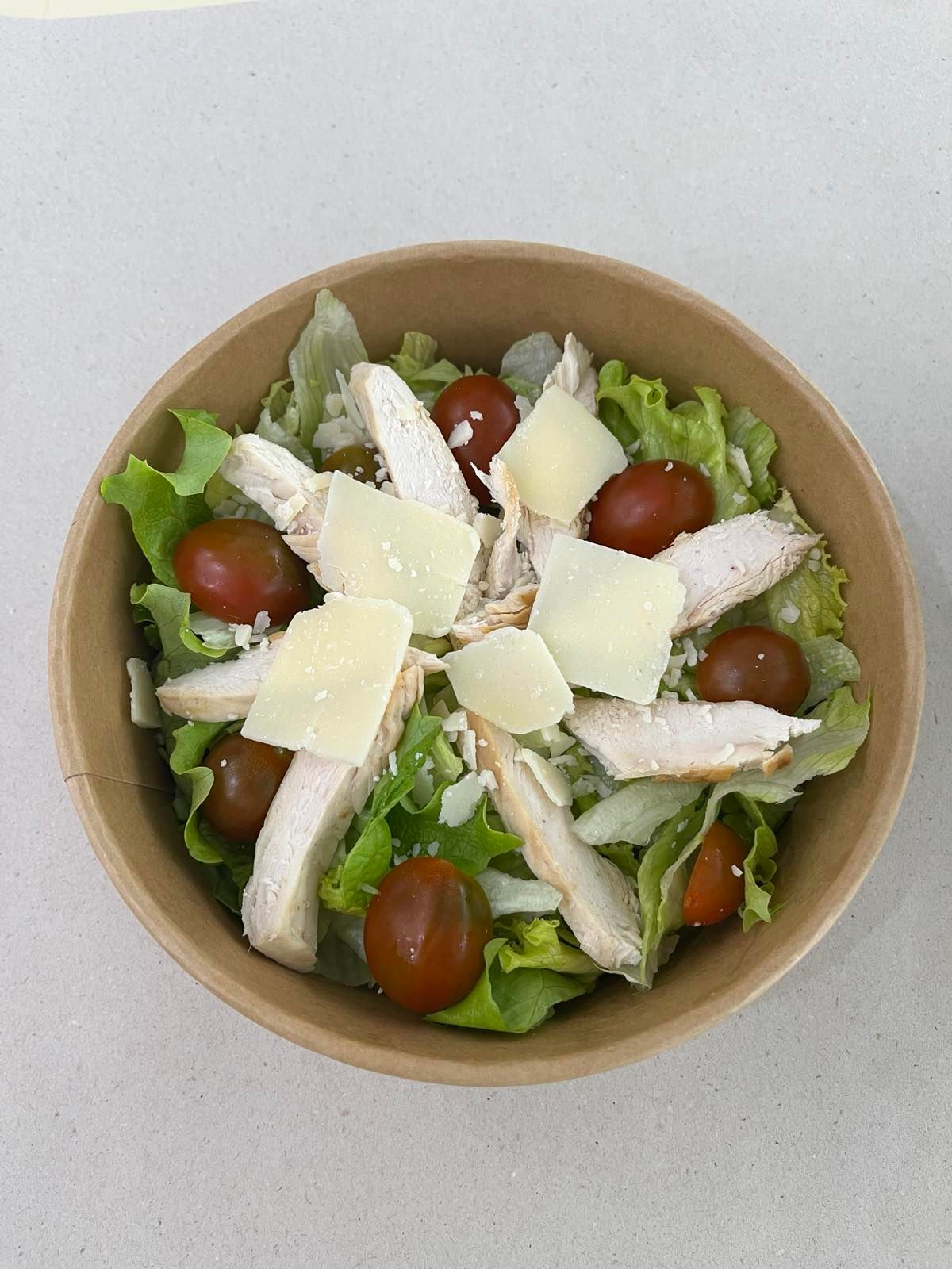 Айсберг салата, чери домати, пилешко филе на BBQ, крутони,сос Цезар - 350г
