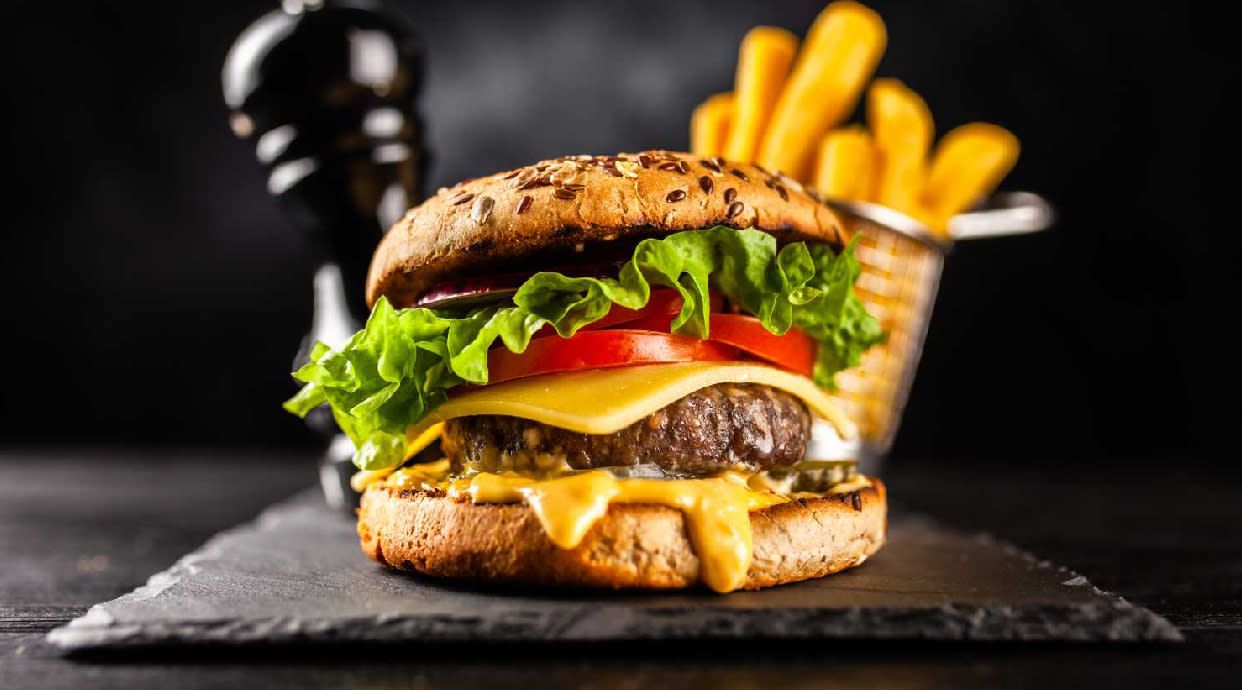 Най-вкусното телешко с ементал, айсберг, домат, специален сос и пържени картофки
